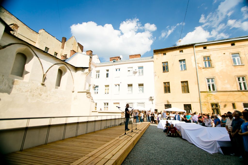 Raising public awareness of diversity and the complexity of heritage sites is a key aim of our public history programs. Exploring and acknowledging Jewish history and heritage as a critical part of the city’s and the region’s history and heritage resulted in an academic conference, summer schools, and a spatial commemoration project, the Space of Synagogues, that become one of the longest-running and most complex public history engagements. On September 4, 2016, after more than seven years of discussions, research, and planning that brought academics, experts, representatives of the Jewish communities and city authorities together, the first part of the Space of Synagogues was opened and officially became part of contemporary Lviv as a new memorial and public space. The project consolidated efforts, knowledge, and experience of scholars, experts, and representatives of the Jewish community of Lviv, of international institutions and city officials, of significant support of donors from different countries of the world.