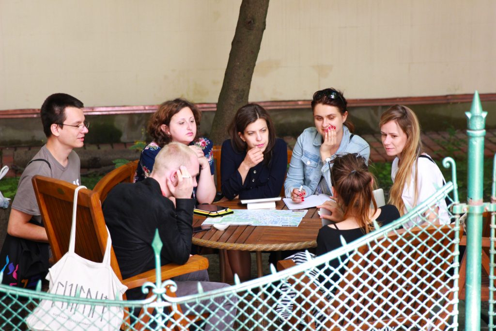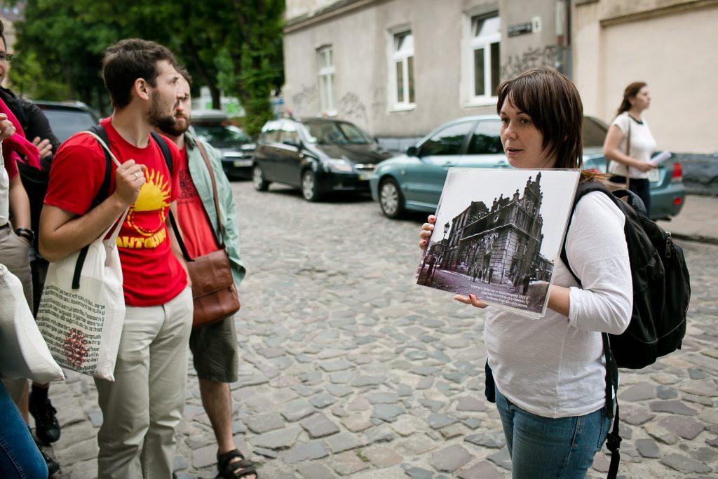The practical part of the school focused on public history format – city walking – and on interwar multicultural artistic and literary Lviv/Lwów/Lemberg with a spotlight on Jewish cultural milieus. The aim of the workshop was to train the school participants how to work in the format of city walks and how to attract the attention of local communities to "wiped and invisible" topics of the city’s multicultural literary and artistic heritage in contemporary public space. By relating people, sites, stories, events, documents, text and visual materials, the city’s present space turned for some time into the place of interaction between the past and the present, between the school participants and members of various audiences. The workshop resulted in three city walks, designed by the school participants for a wide audience.